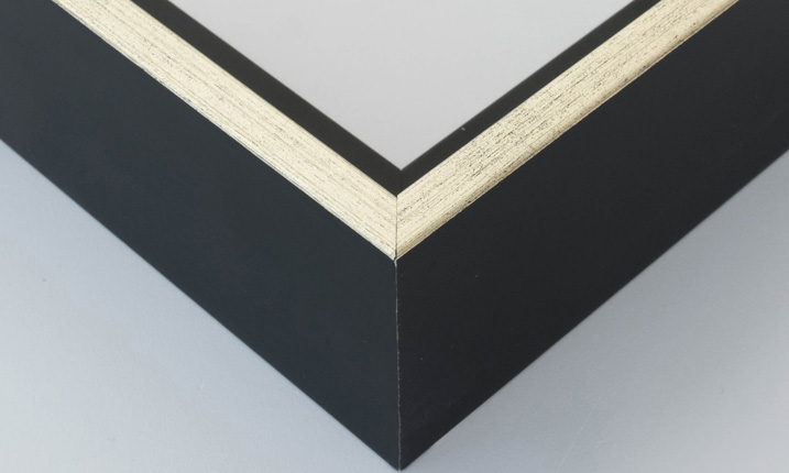 Marco disponible en negro, negro y plata, negro y oro, blanco, wengué y roble.